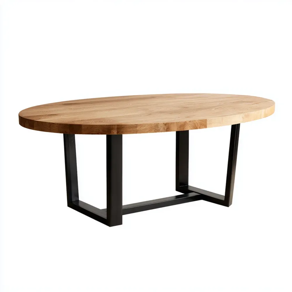 ProduktbeschreibungDieser Esstisch aus massiver Eiche bringt sowohl Funktionalität als auch modernes Design in Ihr Zuhause. Die ovale Tischplatte bietet genügend Platz für Familie und Freunde.