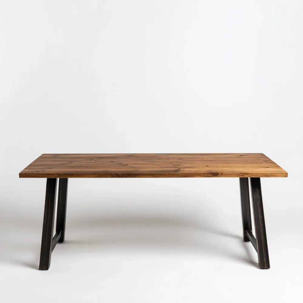 ProduktbeschreibungModerner Esstisch aus hochwertigem Massivholz und stabilem Metallgestell. Perfekt für ein industrielles Wohnambiente.