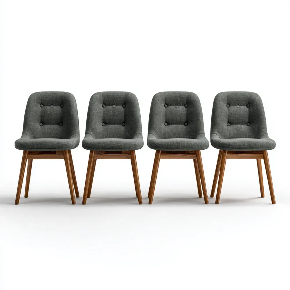 Material und VerarbeitungDie Stühle sind mit hochwertigem Stoff in Dunkelgrau bezogen, der sowohl langlebig als auch pflegeleicht ist. Die Beine sind aus massivem Holz gefertigt und bieten optimale Stabilität und Haltbarkeit.