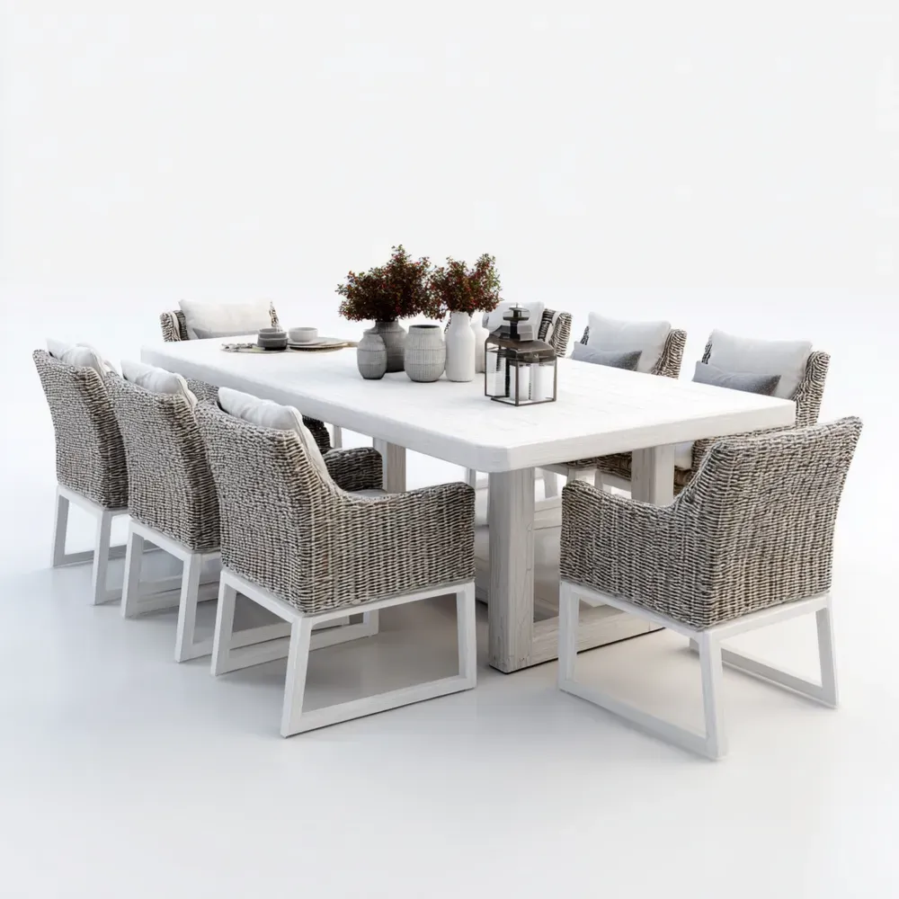 Funktionale HighlightsDas Set bietet ausreichend Platz für acht Personen und ist wetterfest, was es zur idealen Wahl für Ihren Außenbereich macht.
