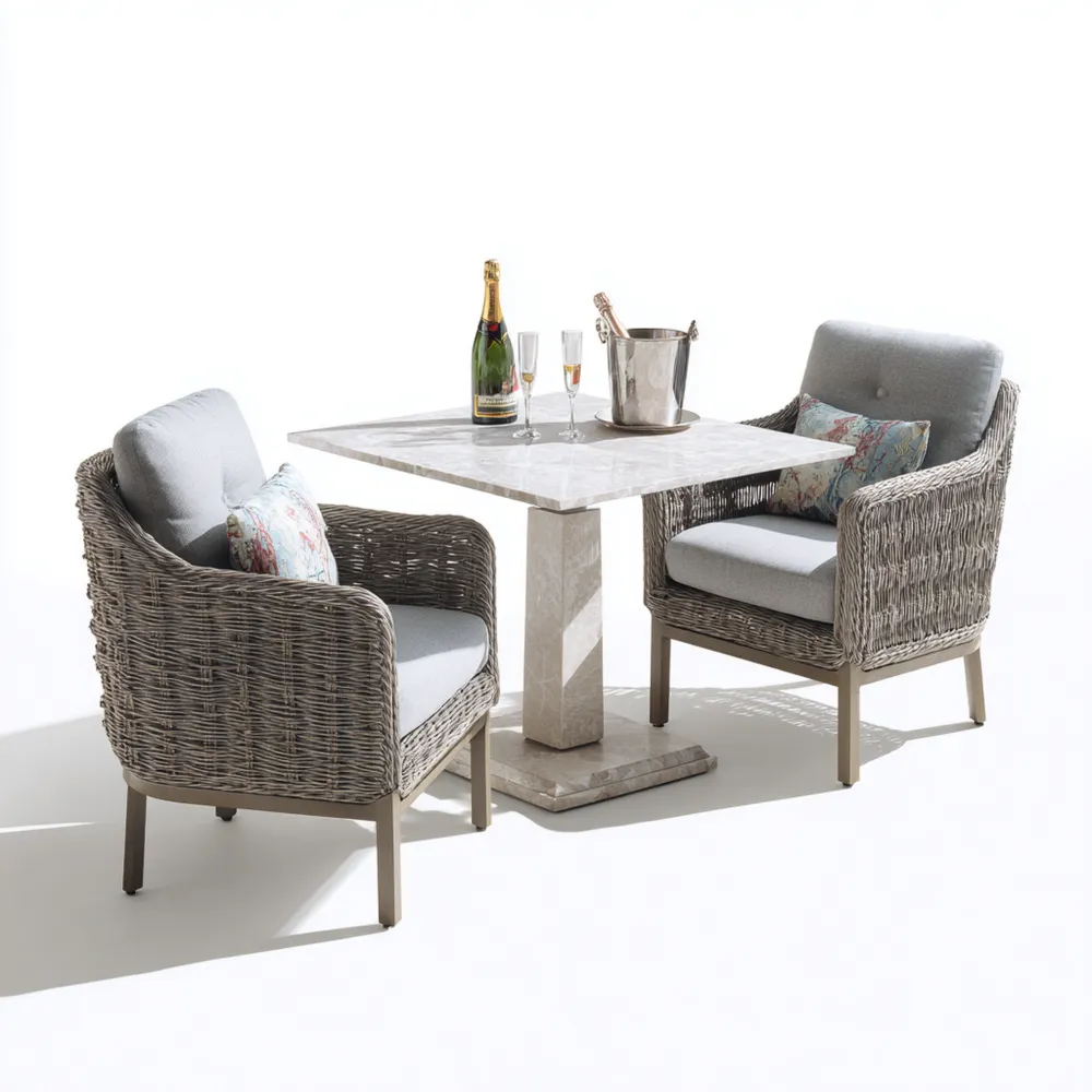 Garten-Esstisch-Set Rattan 2-Sitzer mit Steinplatte 80x80x75 cm – Grau – Modernes Design